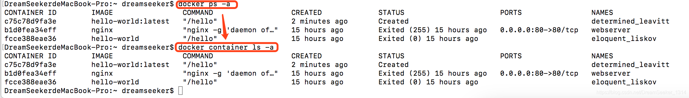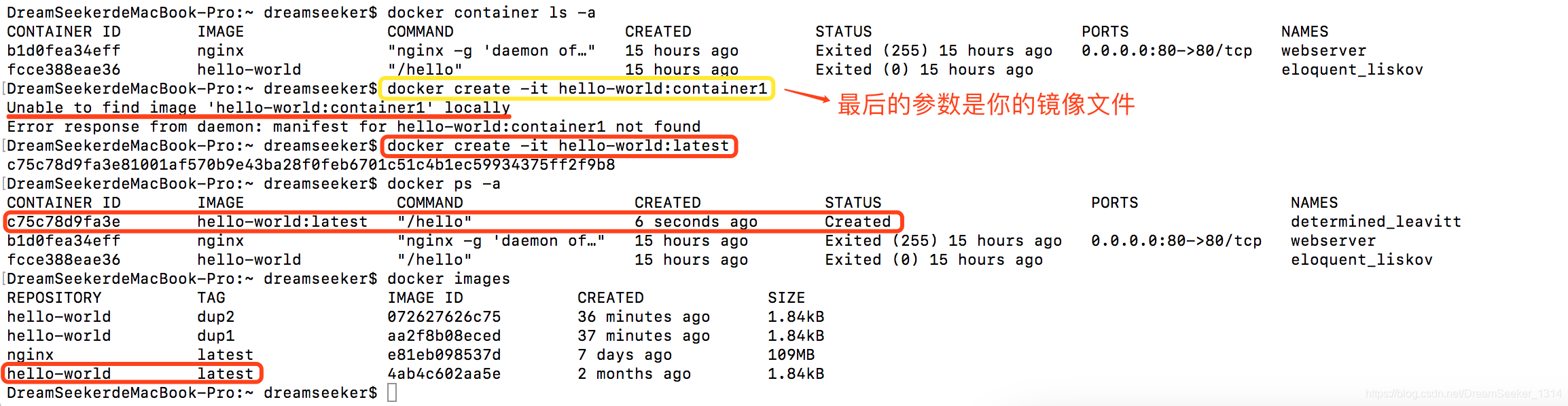 - 利用镜像创建一个容器,并启动该容器;