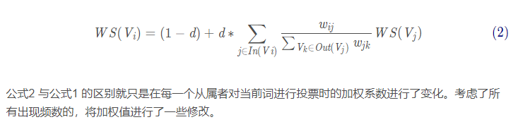 将PageRank 从网页链接拓展到了 文本处理上。从有向图无权重图变成了无向有权图。