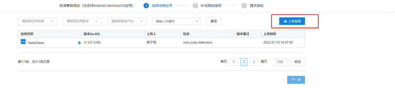第七步:点击上传应用