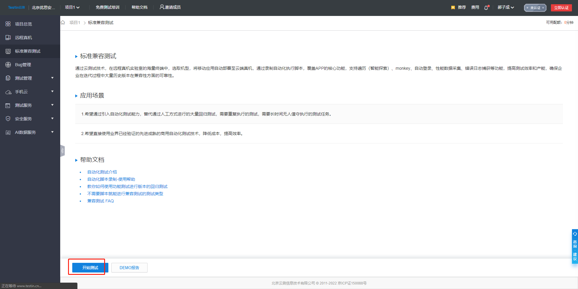 第五步:点击标准兼容测试
