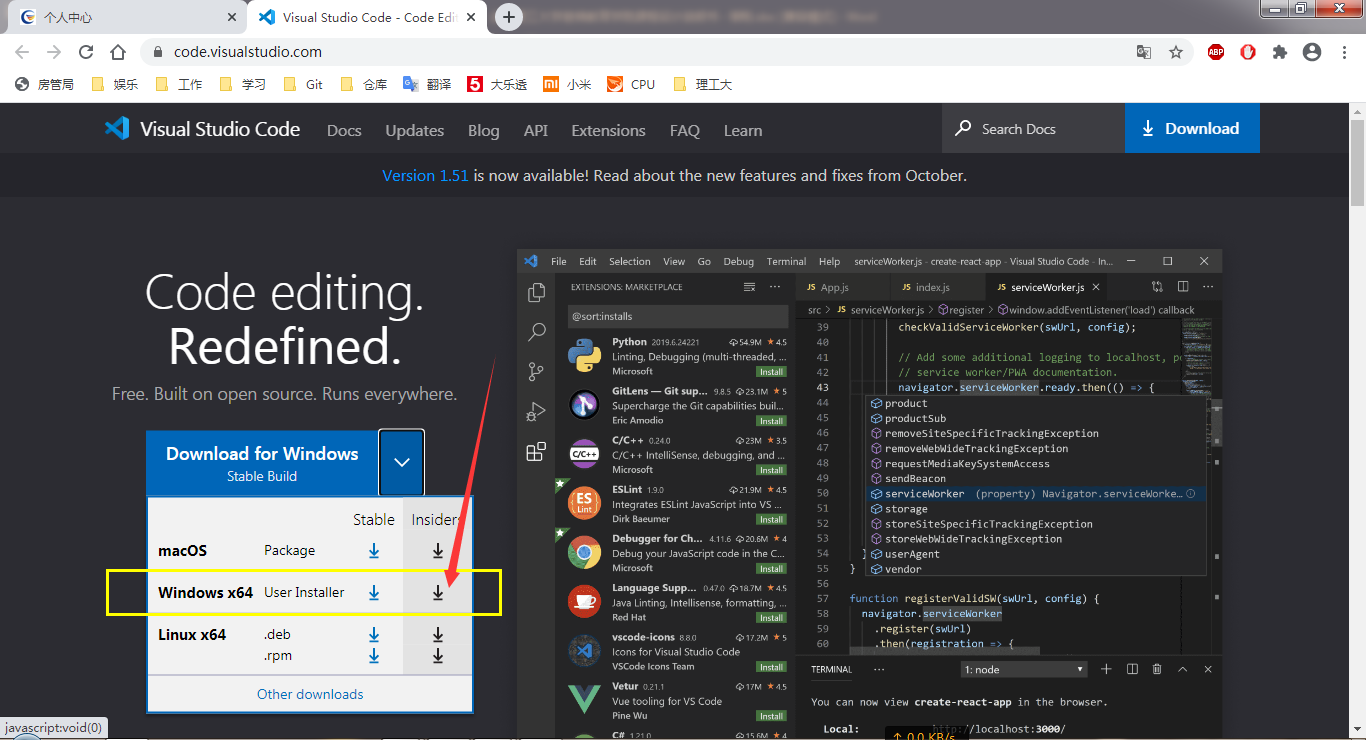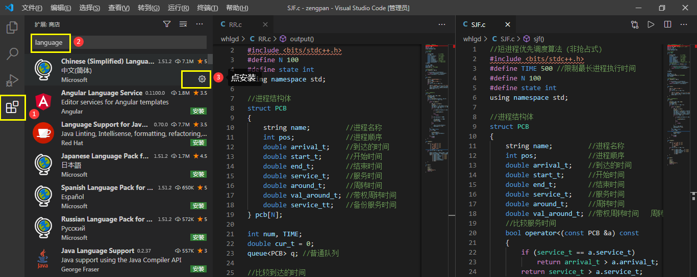 3.1.1 下载安装开发Visual Studio Code,下载地址https://code.visualstudio.com/,安装中文扩展、C/C++扩展