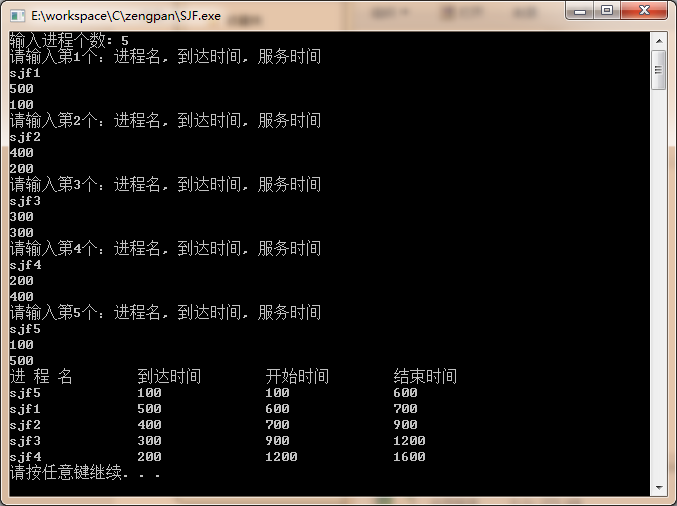 cout << "请输入第" << i + 1 << "个:进程名, 到达时间, 服务时间" << endl;