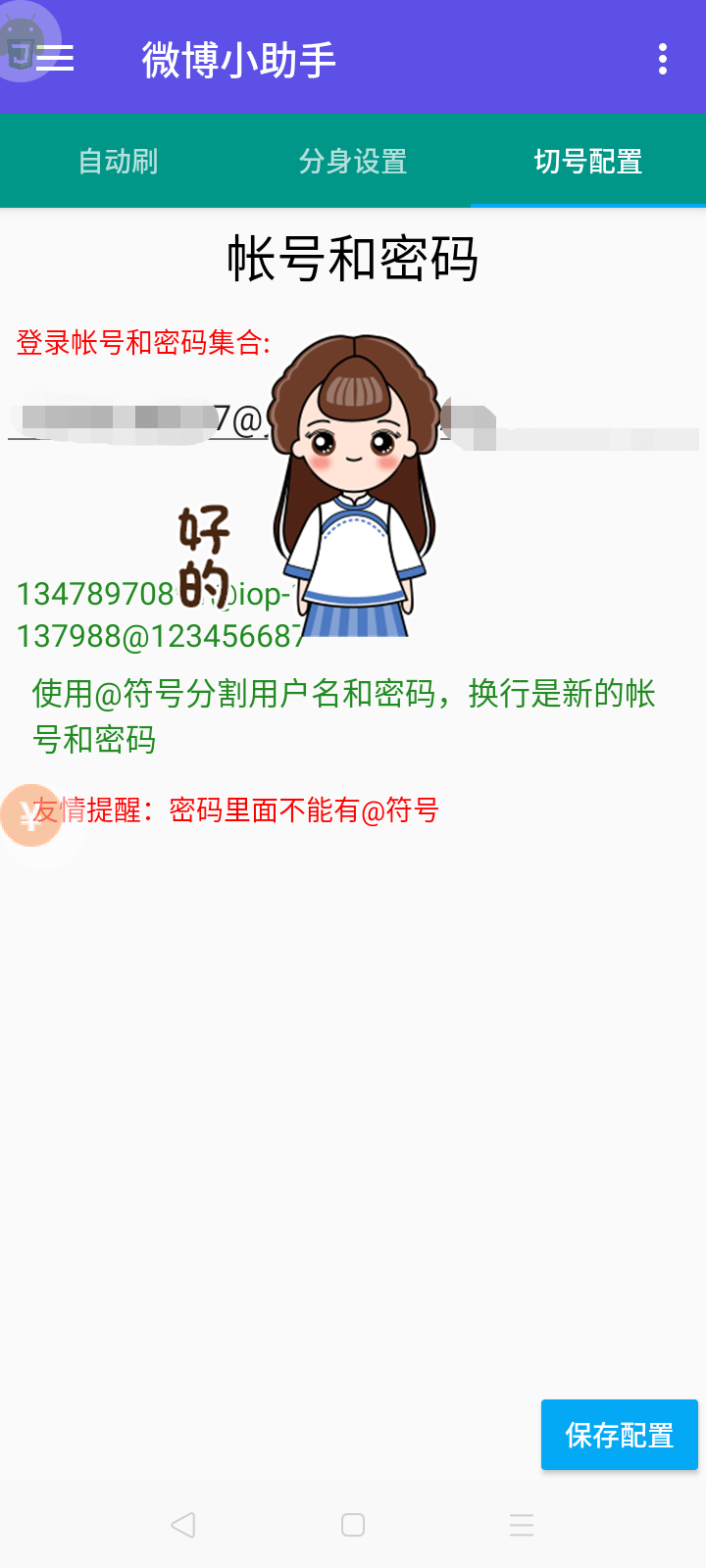 刷微博的项目是个老项目,多少年了,我也参于一下,其实没啥东西很简单就是会遇到个三无的ad控件。我实在是没办法了就强制停止在打开了,AD就没了。另外就是做任务有个0-2的任务做起来也不难,我测试了3个手机问题不大。最主要的是微博专业版我做了2个群刷模式,一个是切号模式一个是分身模式,分身我就不多说了大家都知道而且我在之前的快手、凹音和秘乐都说过,今天就简单说说切号模式。其实就是一个给客户端多个帐号来回登录和登出。