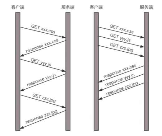如图示,在 HTTP 2 中,两个请求同时发送,可以同时接收,而在 HTTP 1.1 中必须等上一个请求响应后才能处理下一个请求
