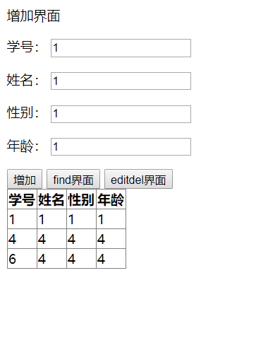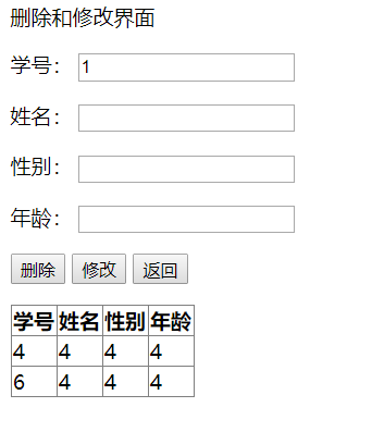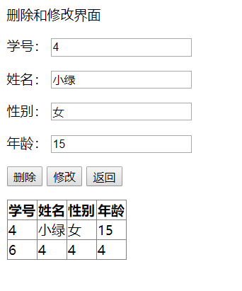 点击返回之后转到添加界面,再转到editdel界面,进行修改和删除: