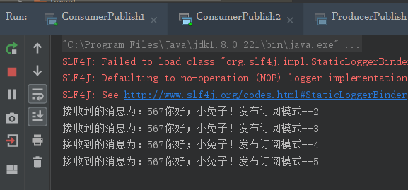 String message = "567你好;小兔子!发布订阅模式--" + i;