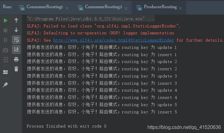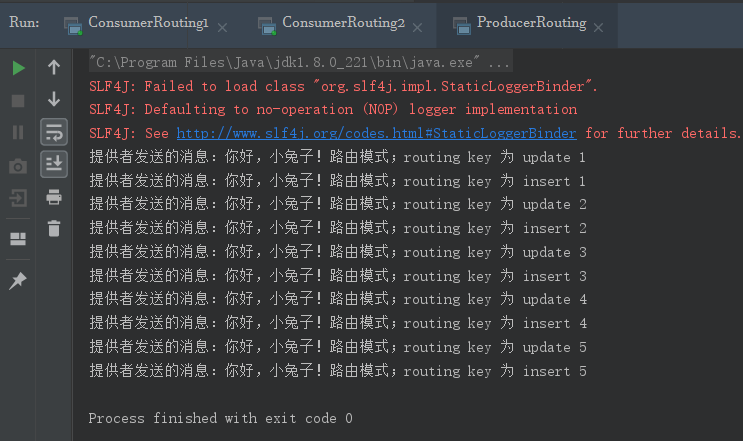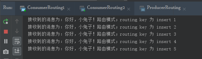 String messageInsert = "你好,小兔子!路由模式;routing key 为 insert " + i;