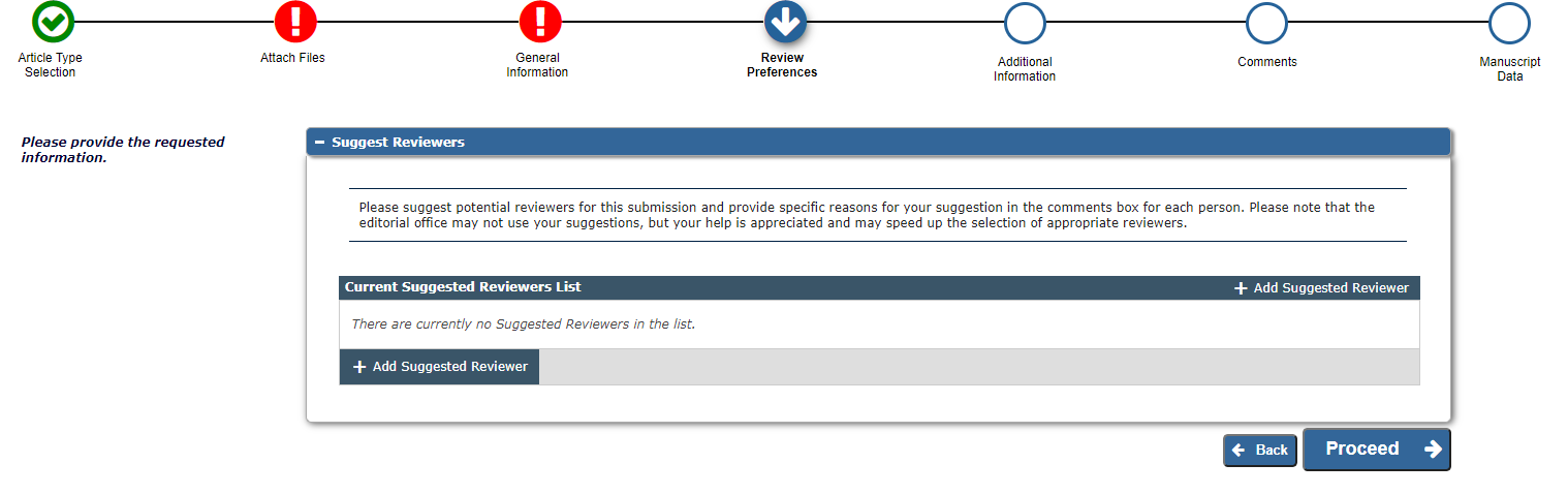 6.这个地方是让投稿人推荐想让谁审你的稿件,并给出理由。当然,编辑很可能不接受你的建议。没有的话直接下一步。