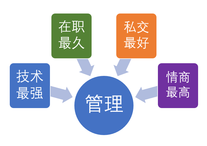 这里要说的一点是,小公司很难谈得上“专业的管理”,因为小公司往往是单点突破+扁平结构,不管是业务还是组织,都没复杂到要靠管理水平提升绩效的程度,所以如果你有志于管理,最好是到中大型公司。中大型的公司,一方面,业务和人员的复杂性,需要较高的管理水平,你可以得到锻炼(这一点和技术能力提升依赖环境一样),另一方面,公司管理阶梯多,你有上升的空间。