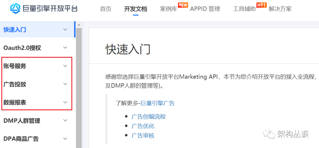 可以看到,MAPI 最核心的三个功能是:账号管理,广告投放,数据报表。
