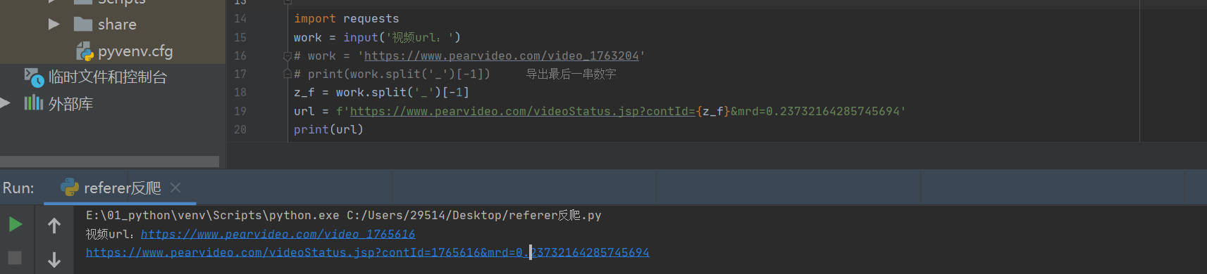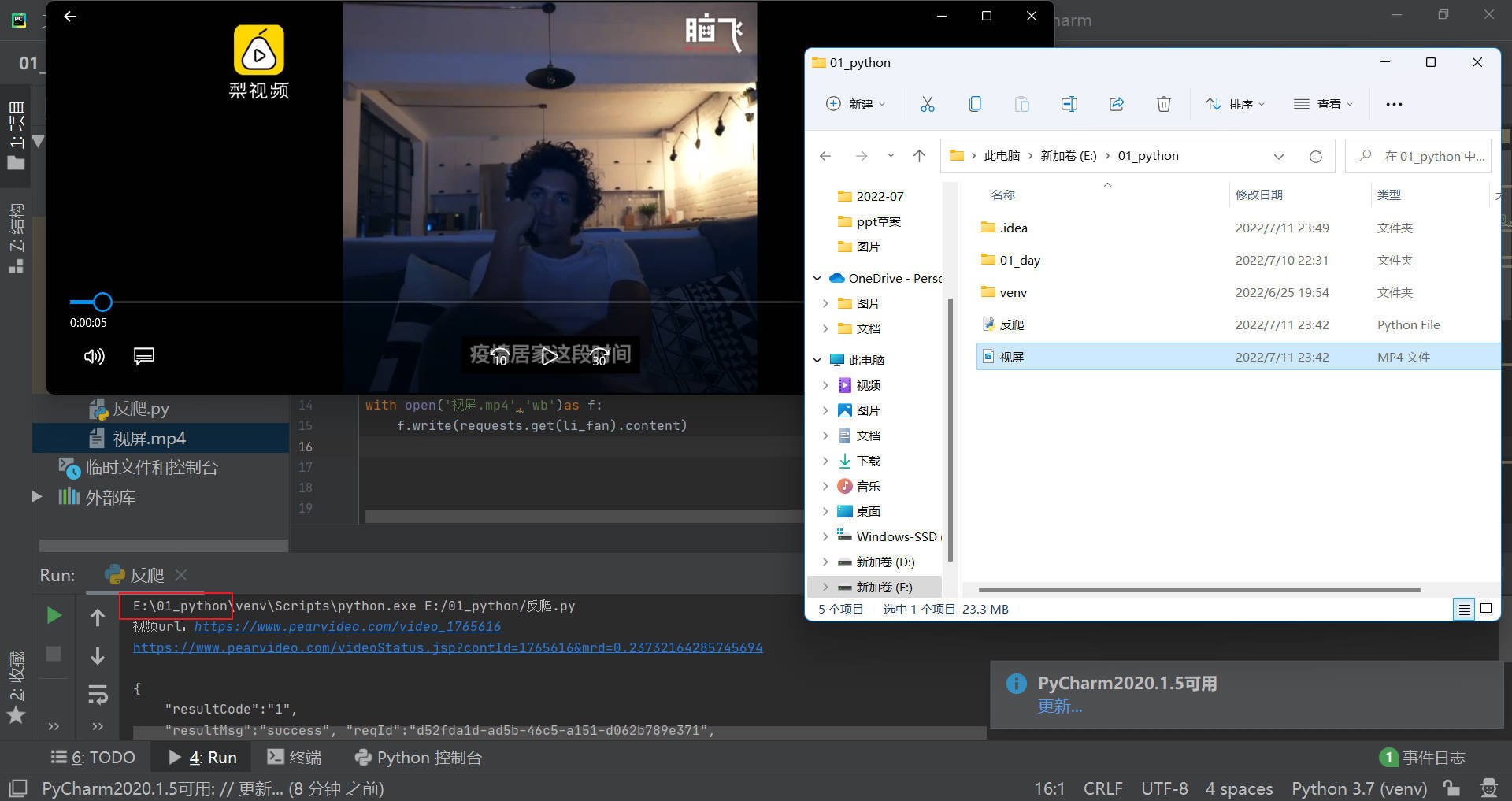 这样一个视屏就爬到手了,此题代码可使用于梨视屏,其他网站需要进一步分析重新搭建
