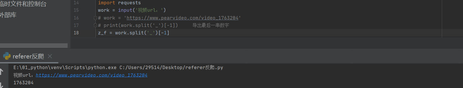 用字符串切片,并且可以以符号'_'分割,split 是分割,rsplit,也是分割方向是从右向左,这样可以把链接最后的数字拿下来,因为唯一变得一串数字是指定视频的位置,不同的数字串指定的是不同的视频,所以是个变量