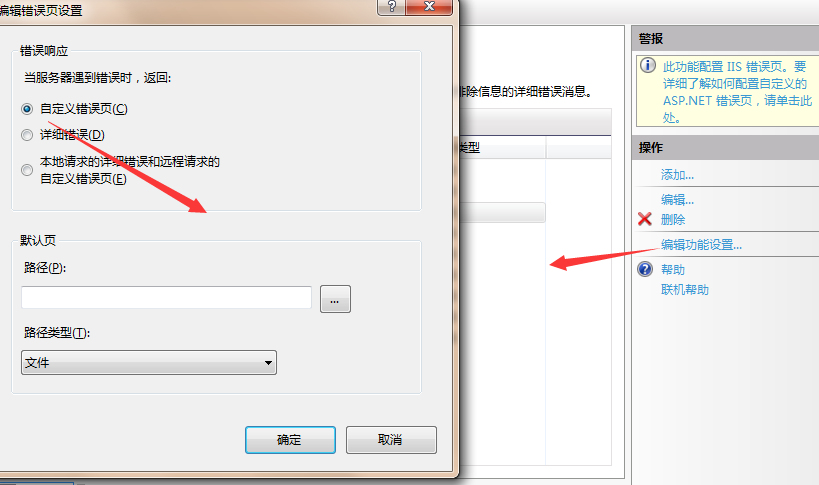 其实是设置少了一步,这一步就是图二,在404自定义错误页面设置完成后,还需要点击右侧的编辑功能设置,勾选自定义错误,然后点击确定就可以看,下面路径的地方不需要填写。