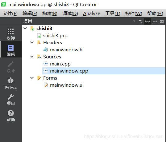 1.使用Qt Creater新建一个Qt Widgets Application,文档结构如下图所示;