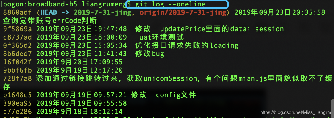 (2)使用 --oneline 选项来查看历史记录的简洁的版本