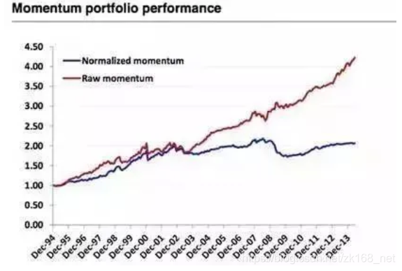 如下图所示,蓝线是去除了异常值后的组合表现,红线是原始数据。我们可以看到原始数据的动量策略要远远好于去除异常值后的策略表现。也就是说异常值包含了很大一部分信息,如果我们在做标准化时去除了异常值,我们就相当于损失了很大一部分信息。因此,最好的办法是对数据进行微观层面的聚合然后再计算总的指标。