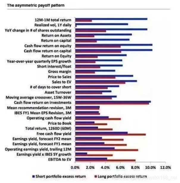 一般来说,做多因子策略时较常用的策略是多空策略,即做多好的股票同时做空差的股票。可惜的是,并不是所有的因子都是平等的,多数因子的多空收益特征存在不对称性,加之做空可能存在的成本和现实可行性,也给量化投资造成了不小的困扰。
