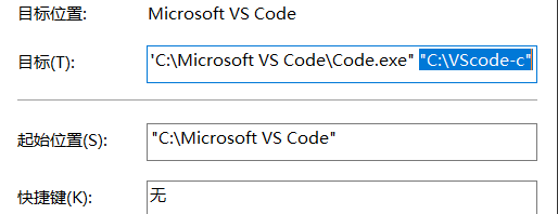 3、复制文件夹目录,并放入vscode快捷方式中,下次打开直接进入该文件夹。