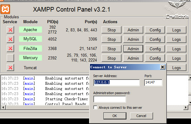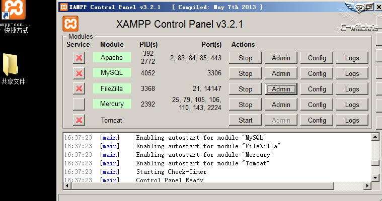 右键点击XAMPP图标,以管理员身份运行,开启FileZilla