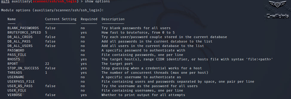 msf6 auxiliary(scanner/ssh/ssh_login) > set rhosts 172.16.12.11
