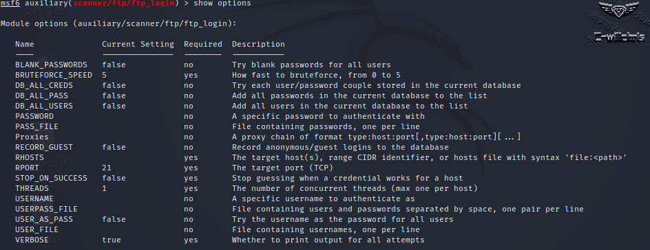 msf6 auxiliary(scanner/ftp/ftp_login) > unset PASS_FILE