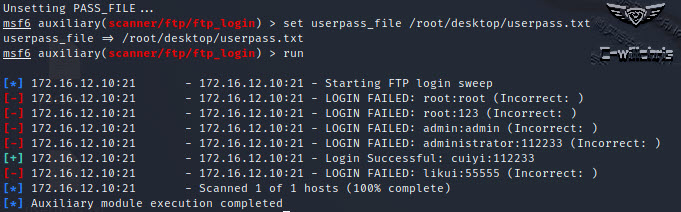 msf6 auxiliary(scanner/ftp/ftp_login) > set userpass_file /root/desktop/userpass.txt