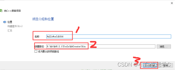 3. 在弹出的窗口中,依次设置项目名称、创建路径后,点击“下一步”。需要注意的是,路径不要包含任何中文字符!