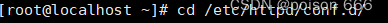 8.进入到con.f文件中:cd /etc/httpd/conf.d