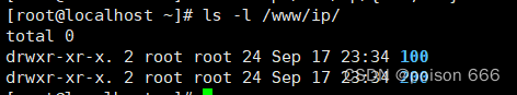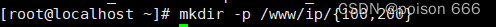 5.创建名称为100,200的文件:mkdir -p /www/ip/{100,200}