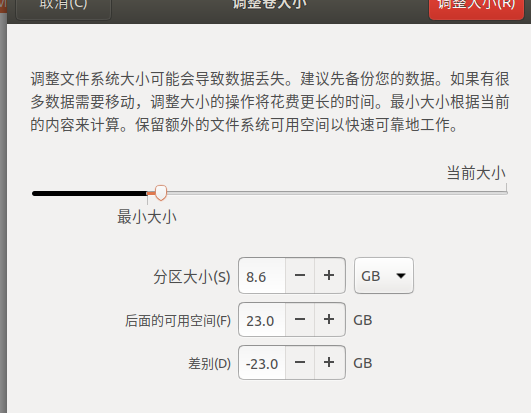 ps:上述修改分区大小也可以用ubuntu自带的磁盘工具进行修改