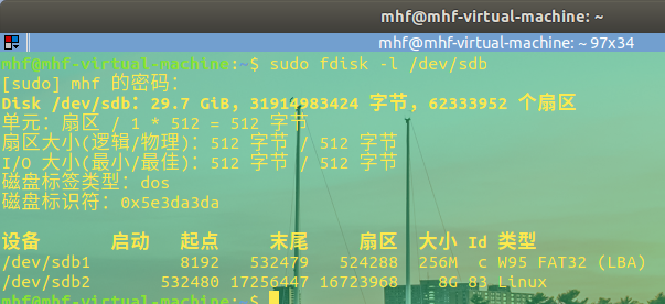 查看分区情况sudo fdisk -l /dev/sdb,制作镜像