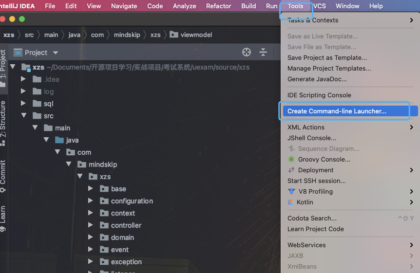 注意:你要打开的是 uexam/source/ 目录下的 xzs 文件,这个才是后端项目的代码。