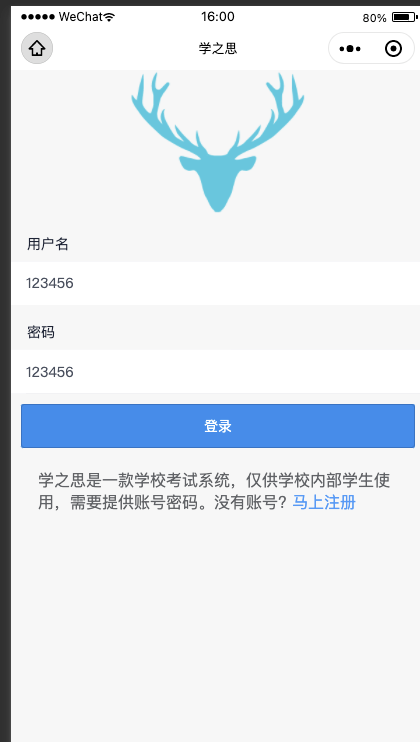 使用我们刚刚创建的学生账号登录,你会发现主页多了一个试卷。这个试卷就是我们刚刚在管理端创建的。