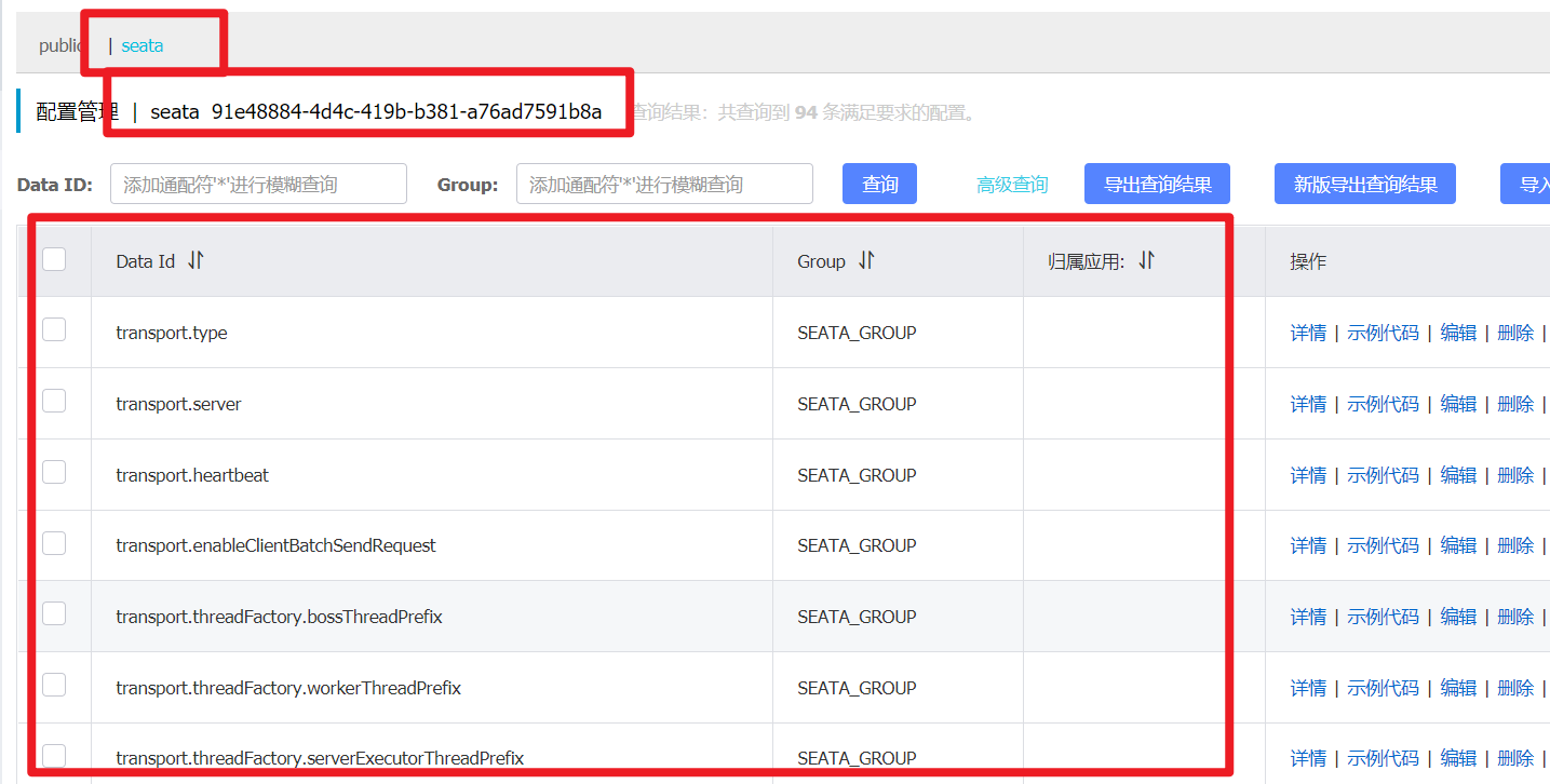 server: port: 2001spring: application: name: seata-order-service datasource: url: jdbc:mysql://localhost:3306/seata_order?userUnicode=true&characterEncoding=utf-8&serverTimezone=UTC username: root password: root driver-class-name: com.mysql.jdbc.Driver type: com.alibaba.druid.pool.DruidDataSource #SpringBoot默认是不注入这些的,需要自己绑定 #druid数据源专有配置 initialSize: 5 minIdle: 5 maxActive: 20 maxWait: 60000 timeBetweenEvictionRunsMillis: 60000 minEvictableIdleTimeMillis: 300000 validationQuery: SELECT 1 FROM DUAL testWhileIdle: true testOnBorrow: false testOnReturn: false poolPreparedStatements: true #配置监控统计拦截的filters,stat:监控统计、log4j:日志记录、wall:防御sql注入 #如果允许报错,java.lang.ClassNotFoundException: org.apache.Log4j.Properity #则导入log4j 依赖就行 filters: stat,wall,log4j maxPoolPreparedStatementPerConnectionSize: 20 useGlobalDataSourceStat: true connectionoProperties: druid.stat.mergeSql=true;druid.stat.slowSqlMillis=500 cloud: nacos: discovery: server-addr: 127.0.0.1:8848 namespace: public config: server-addr: 127.0.0.1:8848 namespace: publiclogging: level: io: seata: infomybatis: mapper-locations: classpath:mapper/*.xml# seata 的主要配置信息seata: enabled: true application-id: seata-bus tx-service-group: my_test_tx_group enable-auto-data-source-proxy: true service: vgroup-mapping.my_test_tx_group: default grouplist.default: 127.0.0.1:8091