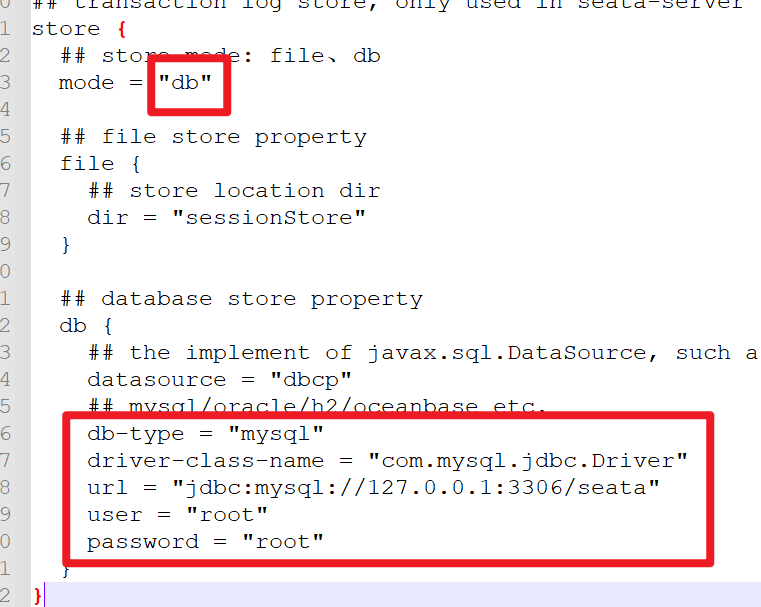 /** * 使用 Seata 对数据源进行代理 */@Configurationpublic class DataSourceProxyConfig { @Value("${mybatis.mapper-locations}") private String mapperLocations; @Bean @ConfigurationProperties(prefix = "spring.datasource") public DataSource druidDataSource() { System.out.println(mapperLocations + "-=================="); return new DruidDataSource(); } @Bean //DataSourceProxy 这个数据库代理是 io.seata.rm.datasource.DataSourceProxy public DataSourceProxy dataSourceProxy(DataSource dataSource) { return new DataSourceProxy(dataSource); } @Bean public SqlSessionFactory sqlSessionFactory(DataSourceProxy dataSourceProxy) throws Exception { SqlSessionFactoryBean sqlSessionFactoryBean = new SqlSessionFactoryBean(); sqlSessionFactoryBean.setDataSource(dataSourceProxy); sqlSessionFactoryBean.setMapperLocations(new PathMatchingResourcePatternResolver().getResources(mapperLocations)); sqlSessionFactoryBean.setTransactionFactory(new SpringManagedTransactionFactory()); return sqlSessionFactoryBean.getObject(); }}