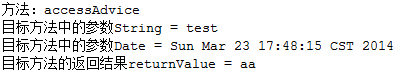 5 }在AOPTest中增加调用这个accessAdvice方法并执行,下面是输出结果: