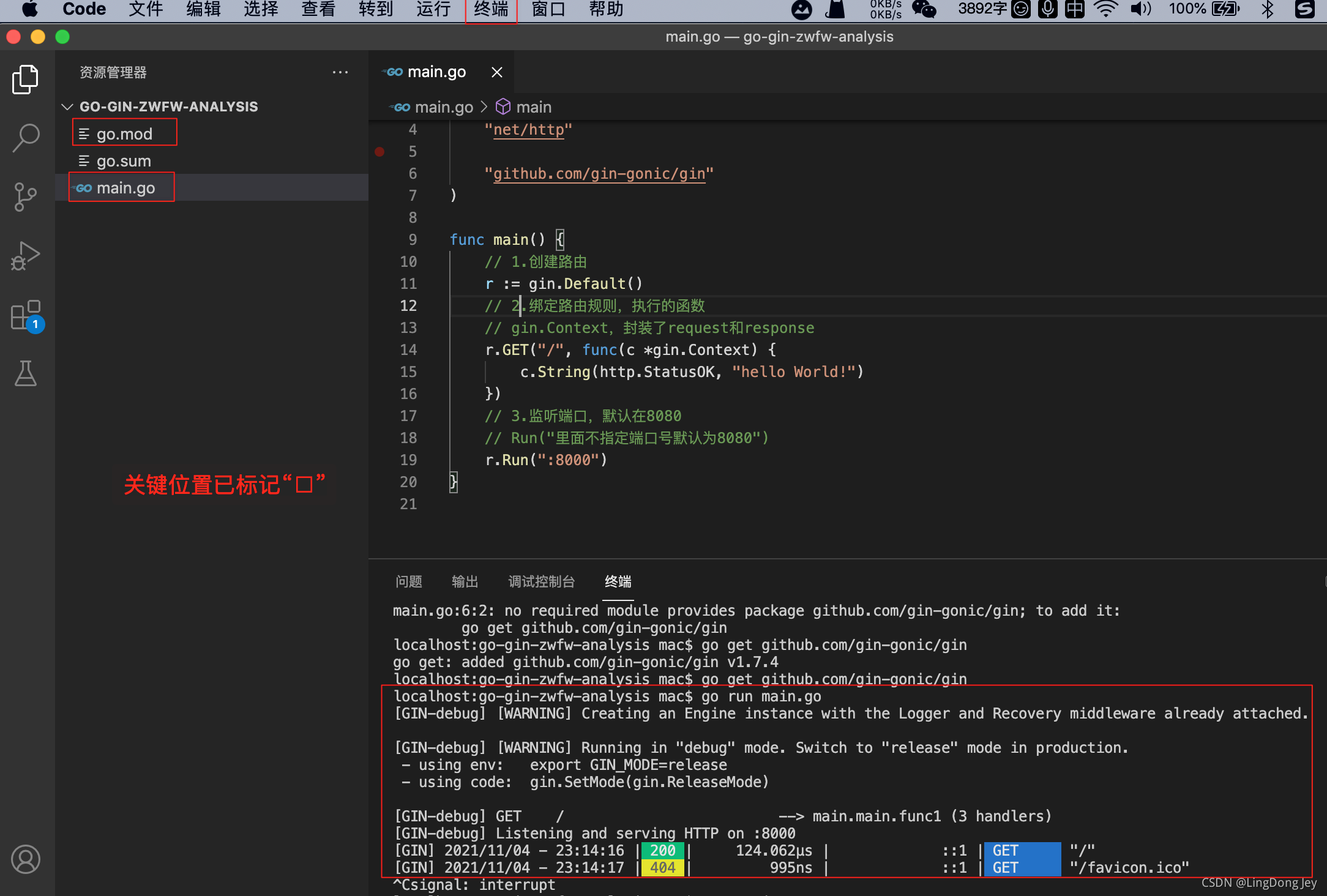 > go get -u github.com/gin-gonic/gin三、项目工程初始化(Vscode工具)