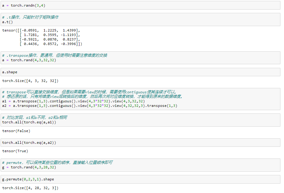 t:和numpy中的转置一样,只针对二维矩阵操作