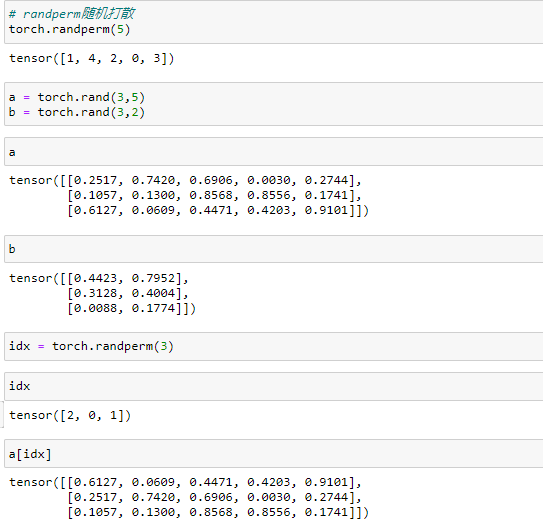 随机打散。输入一个数字,会自动生成这个数字长度的,从0开始的随机排列数字,可以作为索引。当需要对不同的数据,使用相同的索引,并且打乱顺序时,非常好用。