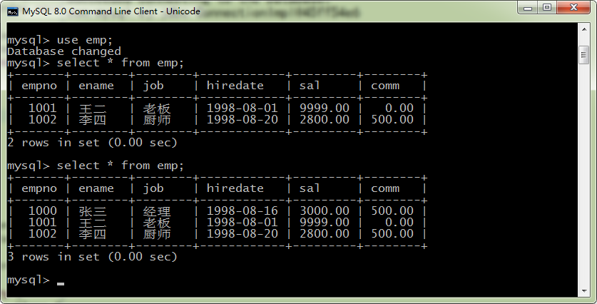 首先,建立一张数据表emp,我建立的数据库和数据表名都为emp