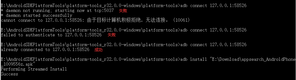 1、在安装好WSA后,在连接adb时(adb connect 127.0.0.1:58526)可能会报错: