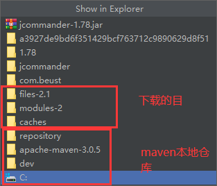 }最后发现工程中并没有引用maven本地仓库的依赖,包括本地仓库已存在的依赖包也没有被引用,而是将所有的依赖下载到本地仓库目录下的caches\modules-2\files-2.1目录中: