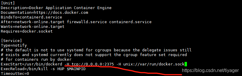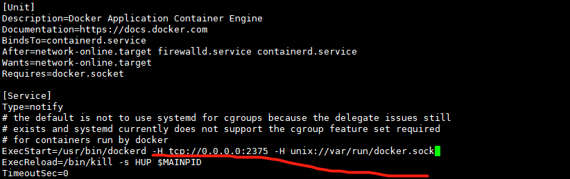 ExecStart=/usr/bin/dockerd -H tcp://0.0.0.0:2375 -H unix:///var/run/docker.sock