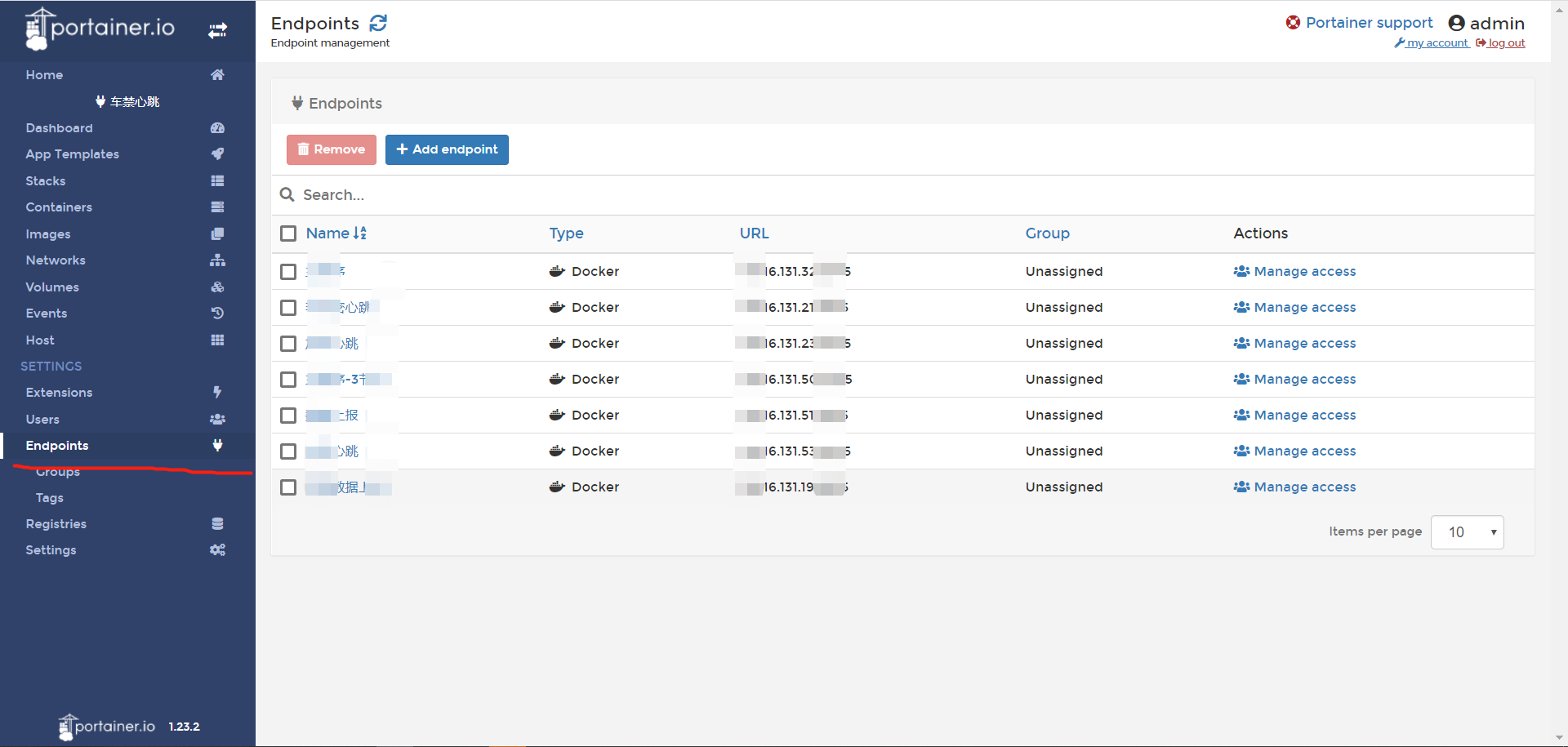3、添加docker主机在Portainer菜单店家“EndPoints”,然后点击“Add endpoint”
