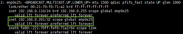 ip addr sh enp0s25 (将enp0s25替换成主机的网卡名)持有虚IP的主机输出会是这样的: