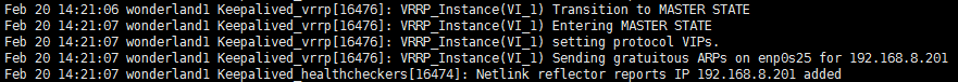 在/var/log/message中,也能够看到keepalived输出的切换日志: