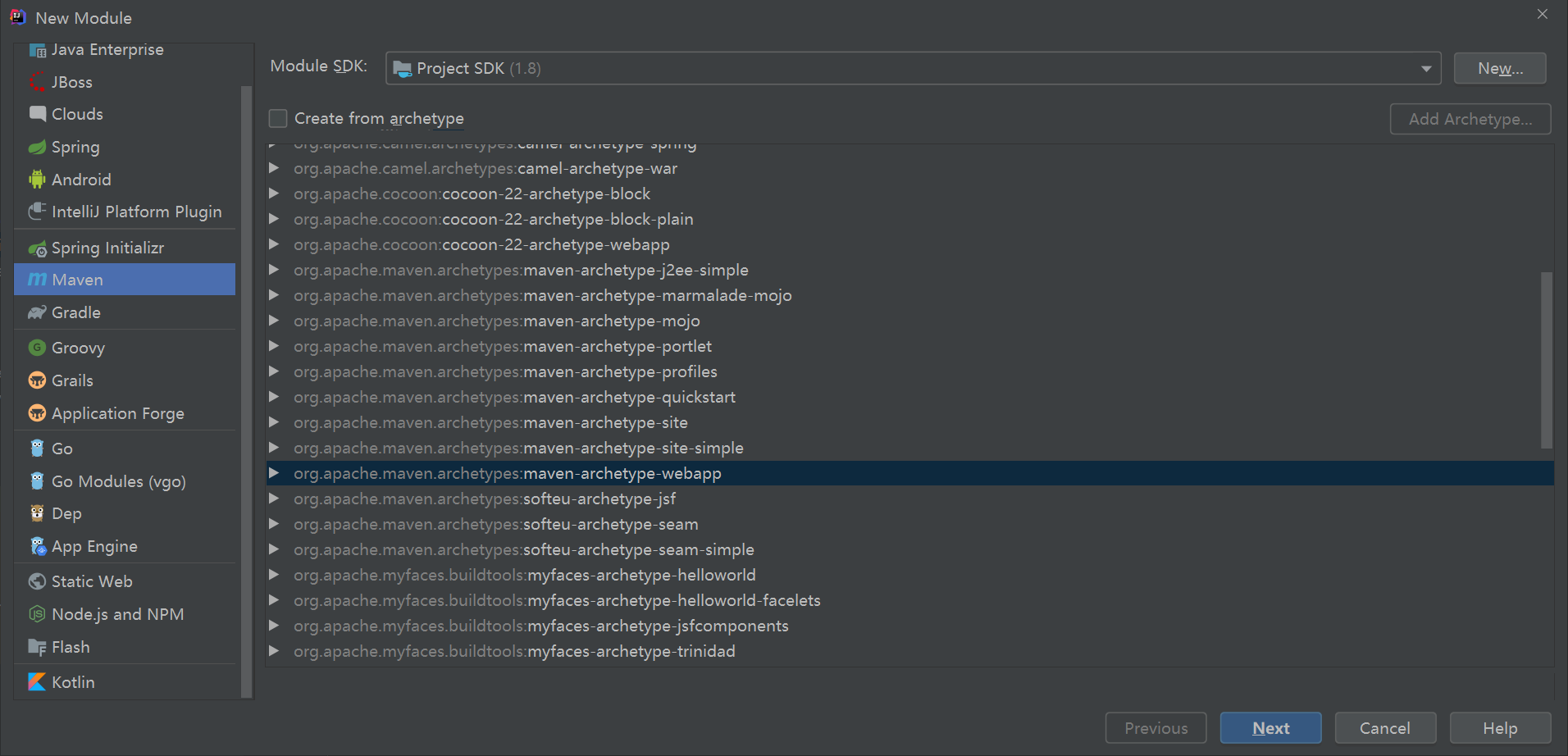 1. new module选择webapp原型