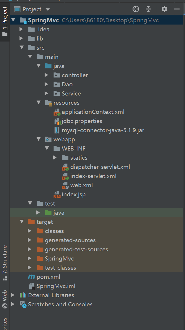 点击OK,我们会发现WEB-INF文件夹下多出了两个文件 :appalicationContext.xml 和 dispatcher-servlet.xml 暂且放置,后文进行配置。