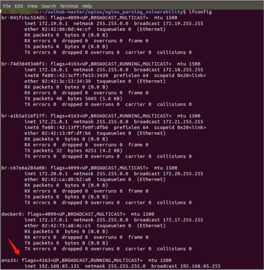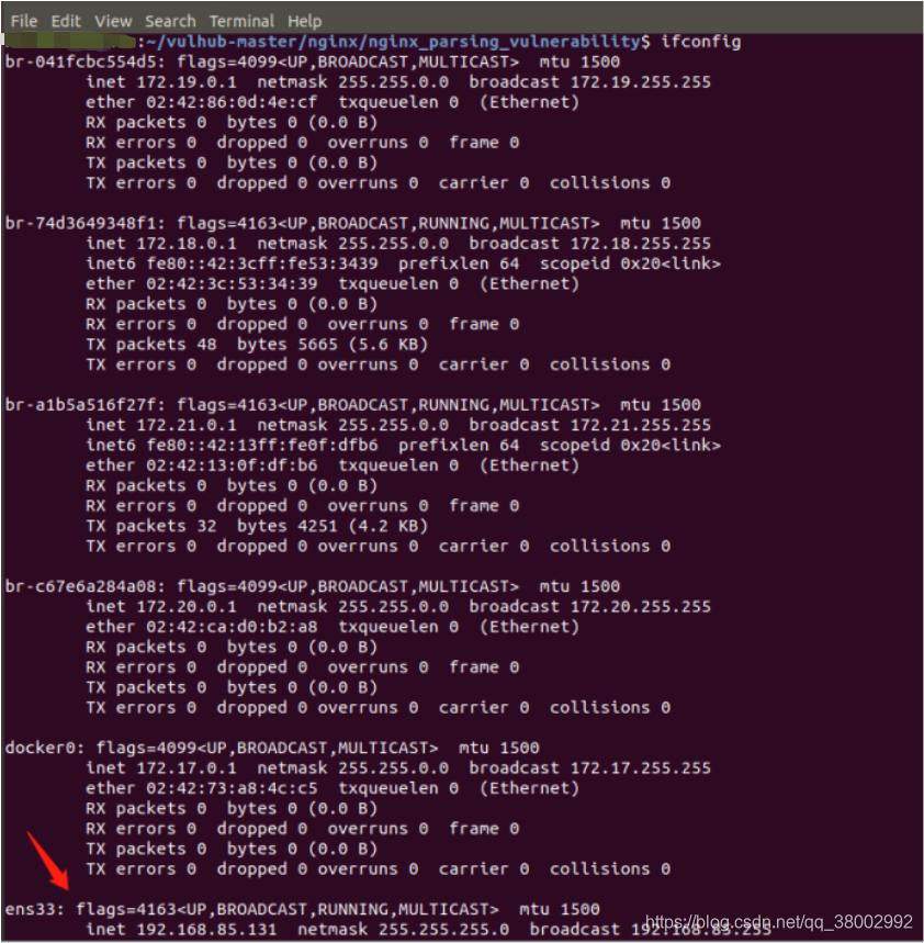 找到ens33中的 inet,这个就是靶场环境的ip,复制下来,在真机中访问: