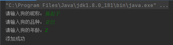 String s = "insert into dog values(default, '贝贝', '哈士奇', 4);";